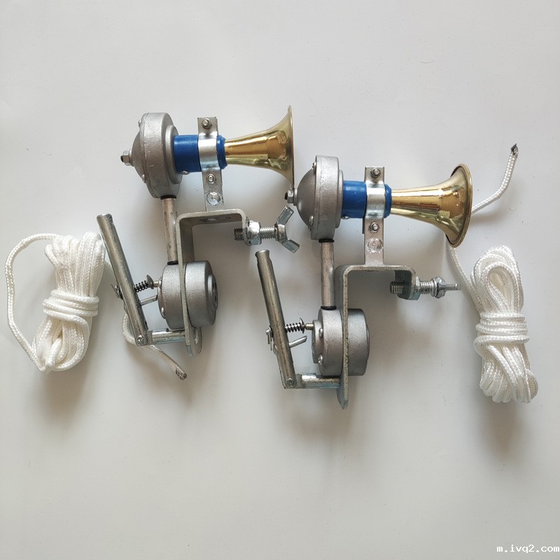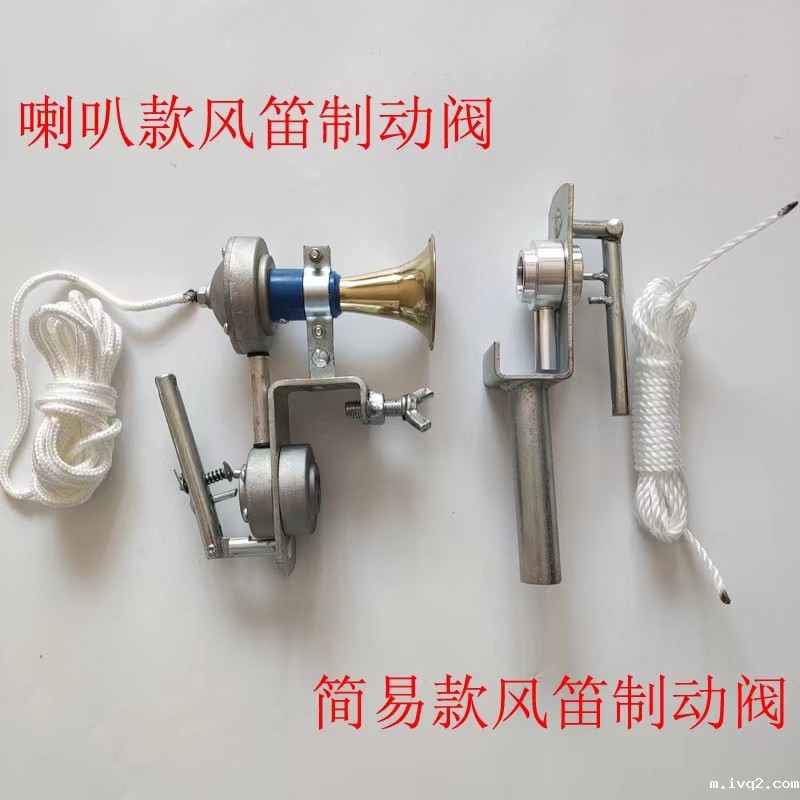 风笛紧急制动阀,其主体为由阀体、两阀芯、导向板和驱于顺序开启阀门的下口连接一个三通体,三通体两侧通动转柄构成的顺序开启阀门,在阀体一侧连接胶管,胶管的另一端接喇叭。设计要点在于分别接有固定板及进气口连接件。风笛紧急制动阀具有双进气口结构可方便地安装于列车的中部车厢,既可保障气路的畅通,又可实现鸣笛和制动,使位于列车中部的调度员也能使用。