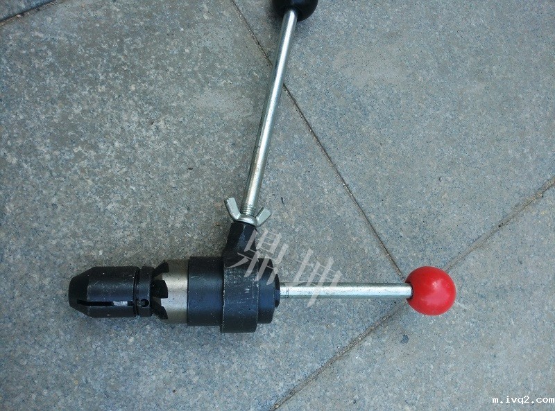 2、卡紧后,开始往复摆动手搬杆,便可进行倒角切削,约10秒钟可倒完。