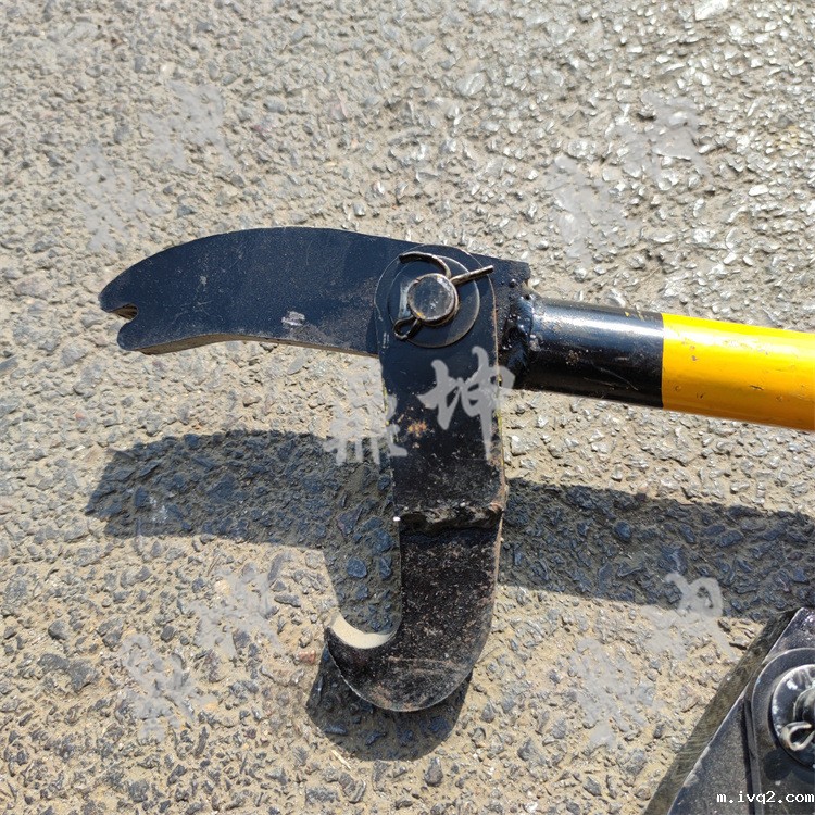1、先将钩子钩住弹条扣件的中间部位,以固定扳头的顶端为支点向后搬动搬把,以达到拆装弹条的目的。