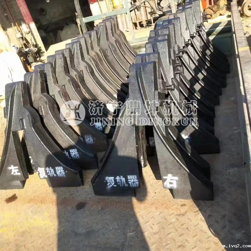 人字形复轨器是用于铁路上机车、车辆脱轨后,由外力牵引下,引导机车复轨的工具。每套人字型复轨器包括左右复器各一件,穿销2件。重量200kg,适用轨型:43-60轨。